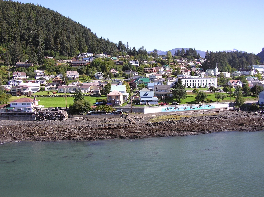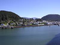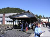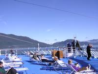 | Approaching Wrangell , Sun is shining & people soaking it up on the Norwegian sun |