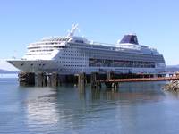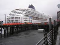| Our ship the Norwegian Sun Pic on the left is in sunny Wrangell Pic on the right is in Rainy Juneau |