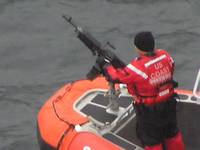 | In every port we entered we were escorted by the U.S Coast Guard fully armed , we were also escorted out of the ports |