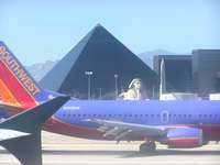 | On the ground at McCarran International Las Vegas , in these 4 pics we can see the LUXOR hotel where we stayed |